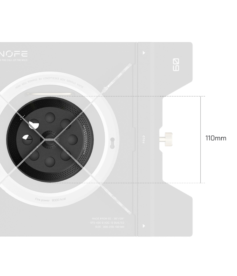 The BUENOFE table burner is compatible not only with the IGT Flat Burner but also with various other setups. The 09 Table Burner features a wide 110mm flame spreader and a powerful maximum output of 8,000 kcal/h, ensuring precise flame control and stable heat, even in windy outdoor conditions.